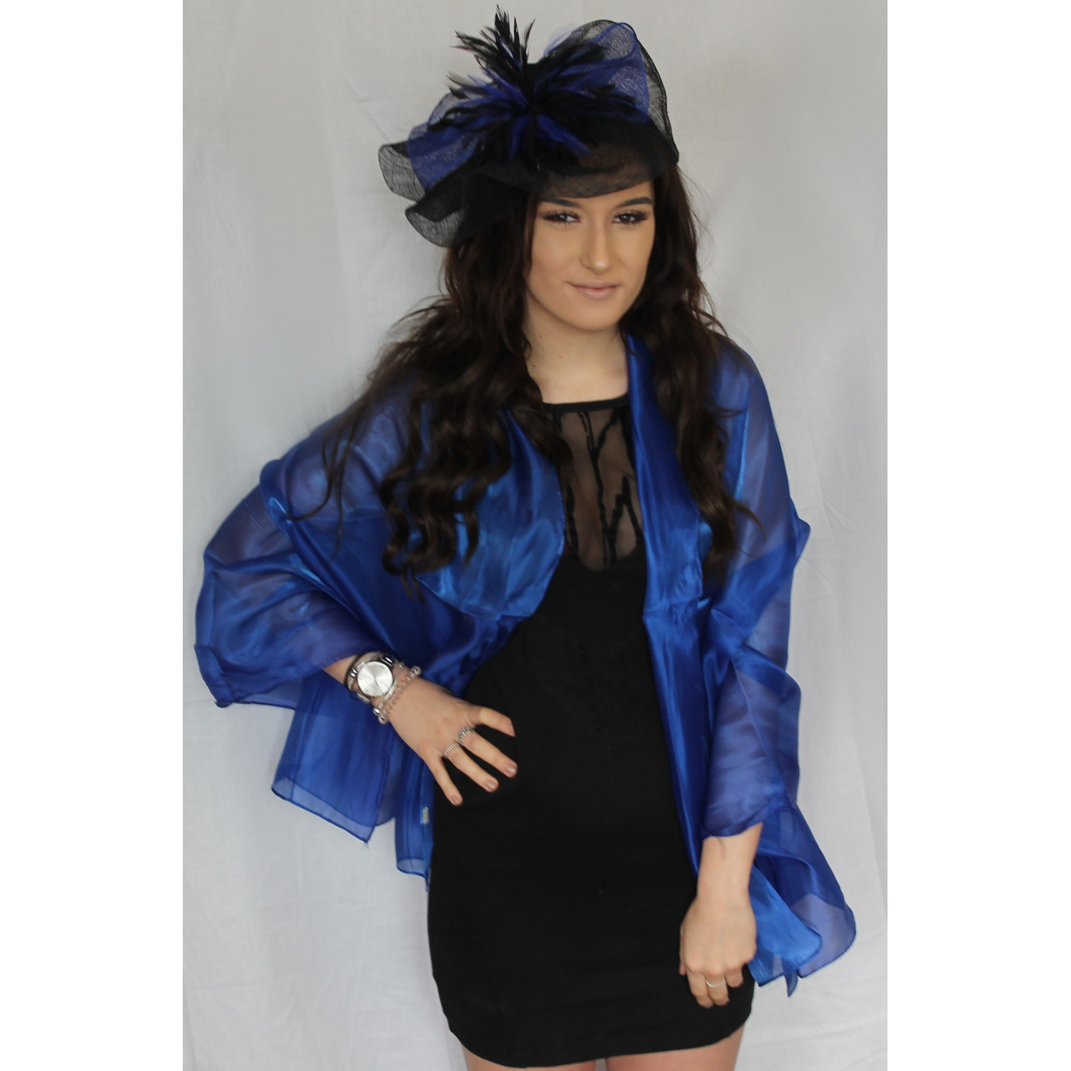 Royal Blue Organza ball wrap Shawl Stole Evening Scarf Dinner