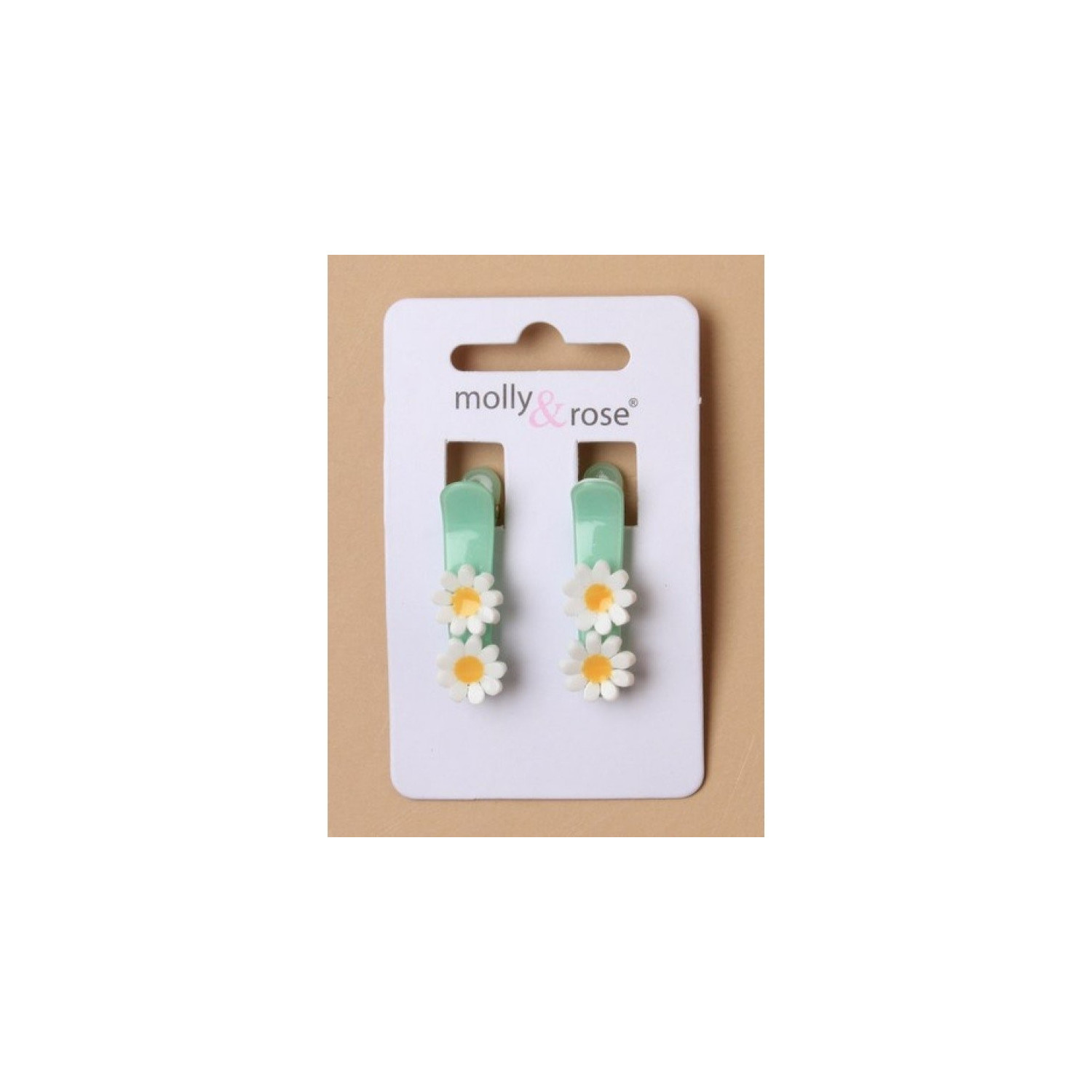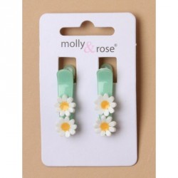 Hair Clips - Card of 2 small white daisy motif coloured 3cm beak clipsIn pink, blue, green and yellow